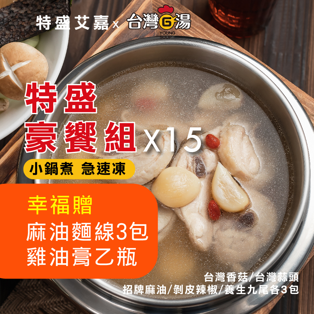 台灣香菇雞湯/台灣蒜頭雞湯/招牌麻油雞湯/剝皮辣椒雞湯/養生九尾雞各3包
